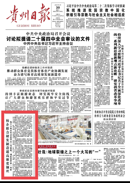 貴州日?qǐng)?bào):校企聯(lián)合研發(fā)制造超高強(qiáng)度鋼絲每平方毫米可承受零點(diǎn)二噸重量,撐起世界第一高橋